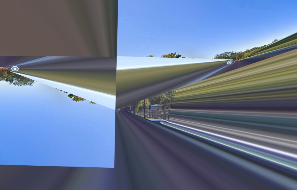 Um. So, I was trying to find nice shots of this giant park in my hometown of Worcester, Massachusetts, (a park that I definitely thought everyone I knew was lying about) and then I was going to try and find things from different places on Google Maps and place them into whatever shots I found. Instead, I came across this glitchy part that wouldn’t stop looking like the first two pictures no matter how much I turned around, or zoomed in or out. I thought that the distorted landscape looked cool, and that is what the first two images are — screenshots of that. As for the third picture… I started cutting up images in what is now some kind of convoluted composite of an already convoluted landscape picture, which, for lack of a better word, I also thought was cool.