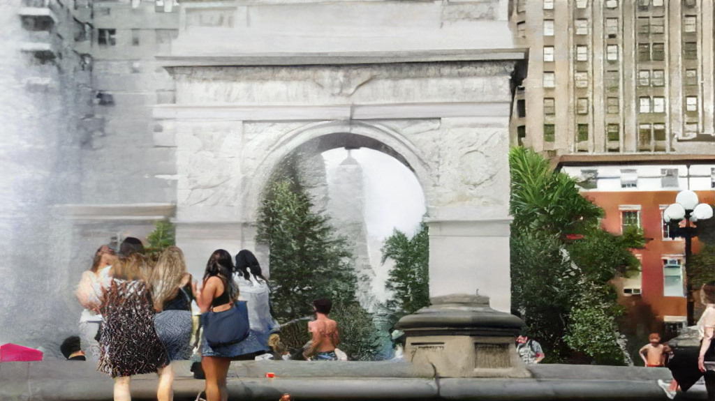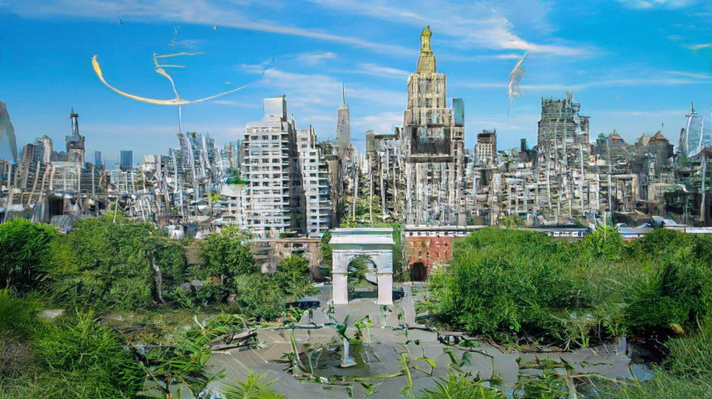 Deciding to focus on virtual photographs that would be helpful in a larger project -> initially deciding to make a collage of park photographs to create a park that doesn’t exist, then deciding it’s too hard -> considering AI -> asking myself how I would create content for a web horror series without visiting the locations involved -> Googling AI in image manipulation -> using NVIDIA GauGAN2 and Looking Glass v1.1 to create and edit unreal photographs.