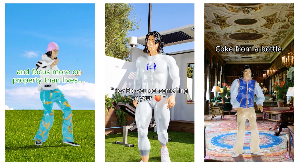 A digital artist who uses motion capture AI and photogrammetry to humorously explore complex technological issues, such as surveillance capitalism on social media.