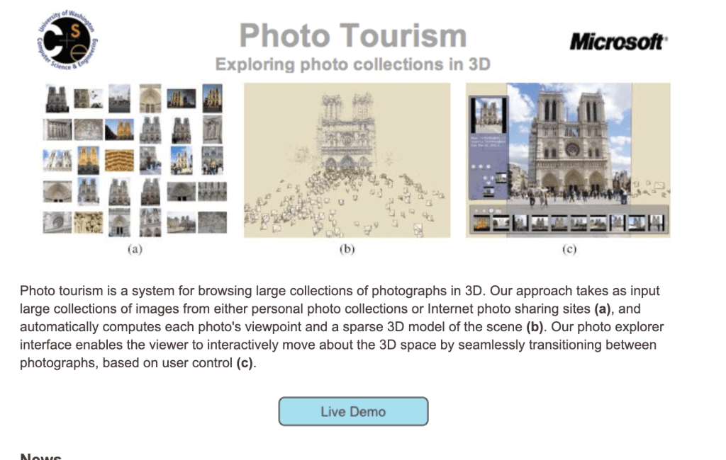 Photo tourism and Photosynth by Microsoft Research