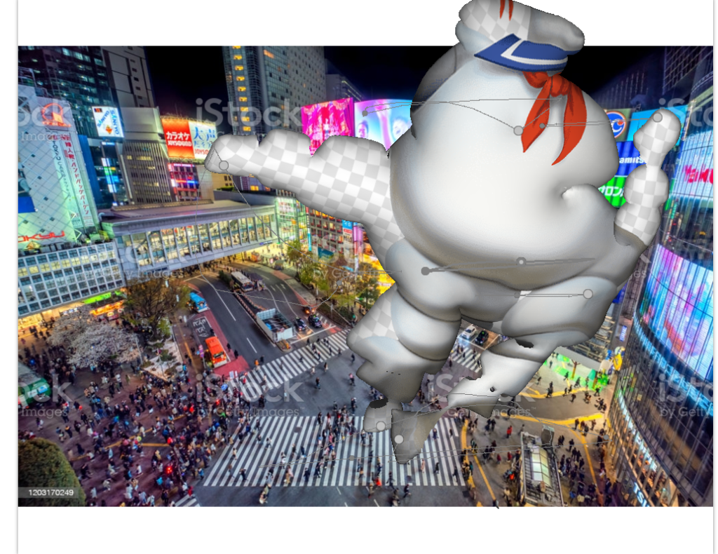 I tried playing around with some of the tools and had some trouble but I remembered monster mash from the lecture and found it to be interesting. I experimented by drawing blobs to see how it would inflate. Seeing the puffy blobs, I then decided that I would draw the Marshmallow man and animate him. I used the pins to then animate him doing a little dance (which I couldn’t figure a file format that would work with WordPress). I then read the documentation to figure that I could cover the 3d object with images and add backgrounds.