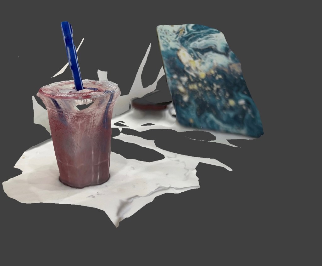 I downloaded a couple of different 3D scanning apps and began experimenting around the cafe that I’m at. It was difficult to get good scans without the cafe workers looking at me funny. After a lot of attempts, I was able to get a semi decent scan of my smoothie. While I walked around the cafe, I found a plant and experimented a bit with that. The app I used had three settings and I was playing around with texture a bit to produce a better image of the scan. These aren’t the best scans, but it’s way better than the first scan I took for sure.