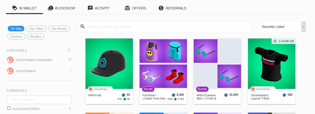 On Opensea there exists a collection of “Decentraland Wearables” and at the same time, you can get items on Dentraland’s own Marketplace. Now why is this interesting? It’s like buying in-game skins/items from outside the game and being able to trade the items without using the game at all. In other words, Decentraland creates an approachable environment for people to use NFT’s and see how such technology can be used.