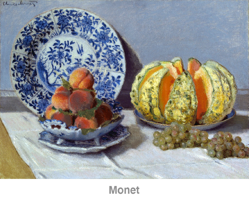 For this project I wanted to continue focusing on still life images. I found still lifes by Monet (Still Life With Melon), Van Gogh (Sunflowers), and Picasso (Still Life). I thought it would be interesting to pass an image through multiple stylizing AIs like a game of telephone. What would the painting look like through all these stages? Would it look the same at the end as it did at the beginning? I used the tool RunwayML to do all the stylizing of the images.