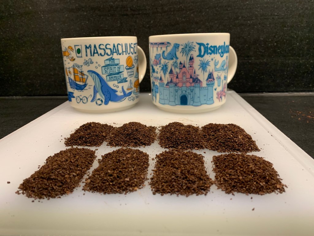 Each row of coffee grounds was one cup of coffee.