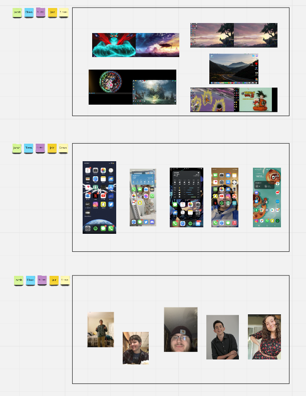 After talking with Claire we figured that the best way to present this would be to have the class try their best to pair all of the different screens with pictures and names. So I asked some of my friends to send my a screenshot of their home screen on their phone, a nice picture of themselves, and a screenshot of their desktop.