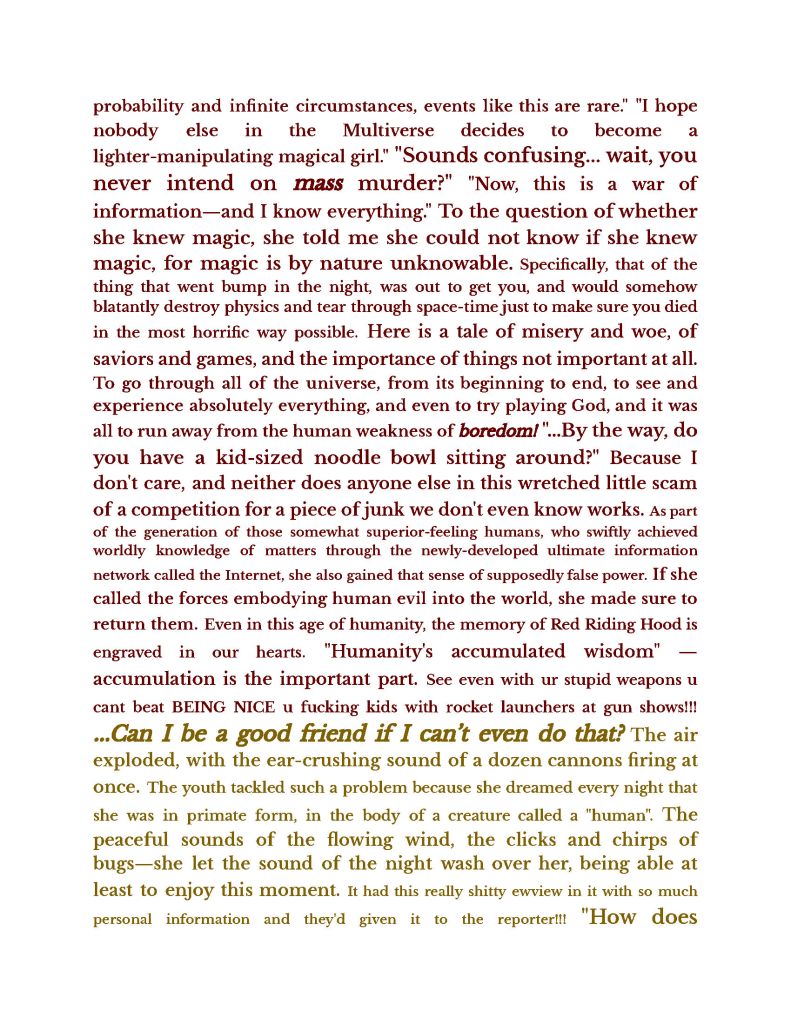 Originally, I wanted to do something along the lines of a collage of album covers or video thumbnails, but I became more dissatisfied with the idea the more I thought about it. Leo’s idea got me to consider looking through my Discord messages, which I still think is a really good idea, but I felt that it overlapped too much. Later on, I came up with the idea of doing this writing retrospective, which I think is inspired by an assignment I did last semester for Visual Foundation Studio, as well as Professor Hentschker’s so sorry.