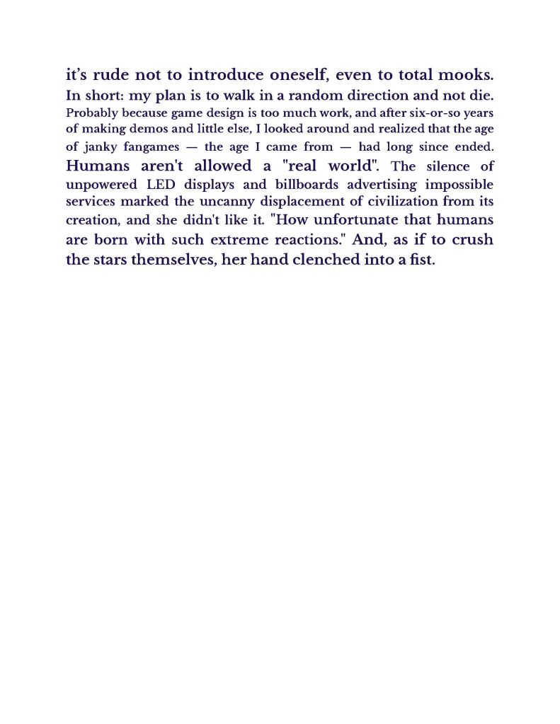 One line taken from almost all the prose I’ve written since 2014, provided with minimal context.