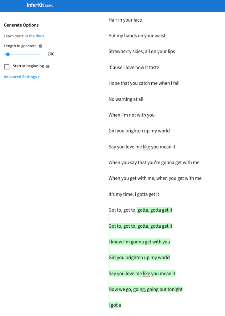 At first,, I played around with text generation and processing through the InferKit and culturerae.com.