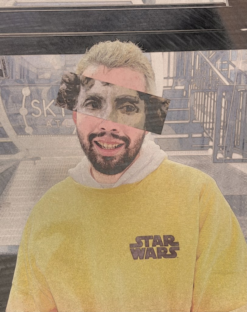 While looking for sculptures, I came across some old paintings and photographs of people and experimented with that for a bit and found that more suitable as it created a more realistic face and allowed me to experiment with the eyes a bit. I personally found it really cool experimenting with how to fit in a different person’s face from a different time and engrain it into a modern face.