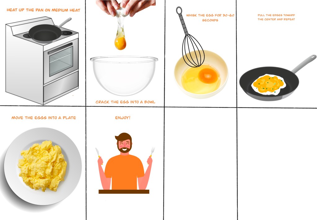I chose to do a comic/scrapbook type of instructions on how to make scrambled eggs.