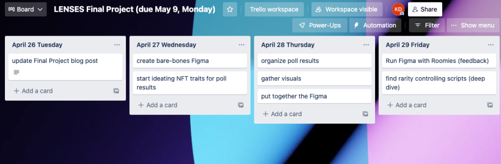 What is your project plan?: I created a Trello board with tasks and dates (if you do visit, you will enter as a collaborator. Please try not to move things around :’) )