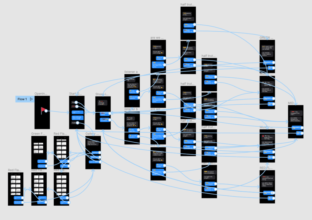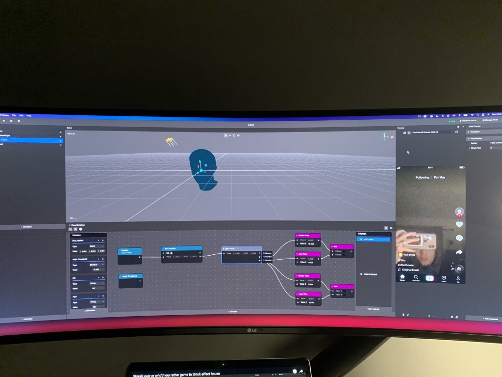 I then tried to use TikTok’s AR studio, Effect House to try and create the would you rather filter with green/red flag options to choose from that would ultimately calculate your red or green flag-ness. Unfortunately, I burned around 4 hours without having the basic mechanisms in place and opted for the Figma experience.